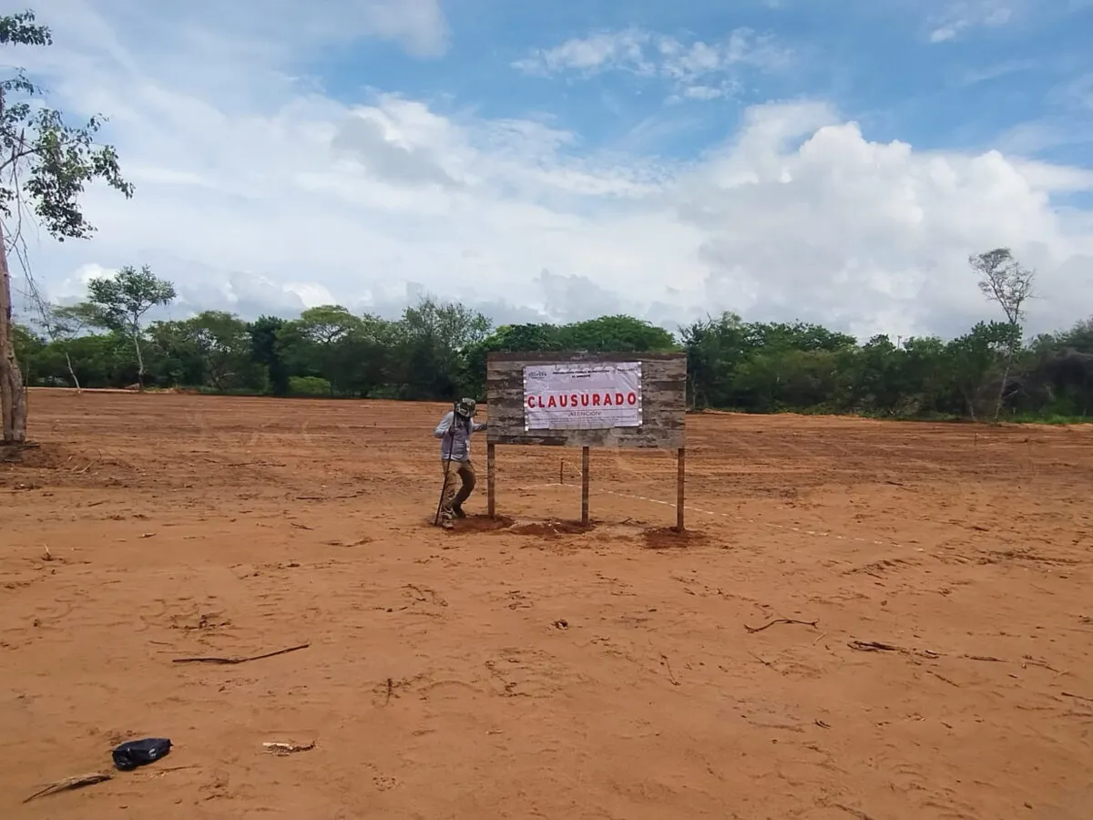 En la diligencia, la persona que atendió no mostró la autorización de Impacto Ambiental emitida por la Semarnat, necesaria para la remoción de vegetación y para la realización de obras de construcción y otras actividades en terrenos forestales, motivo por el cual se impuso una clausura total temporal al sitio inspeccionado y se abrió un procedimiento administrativo.